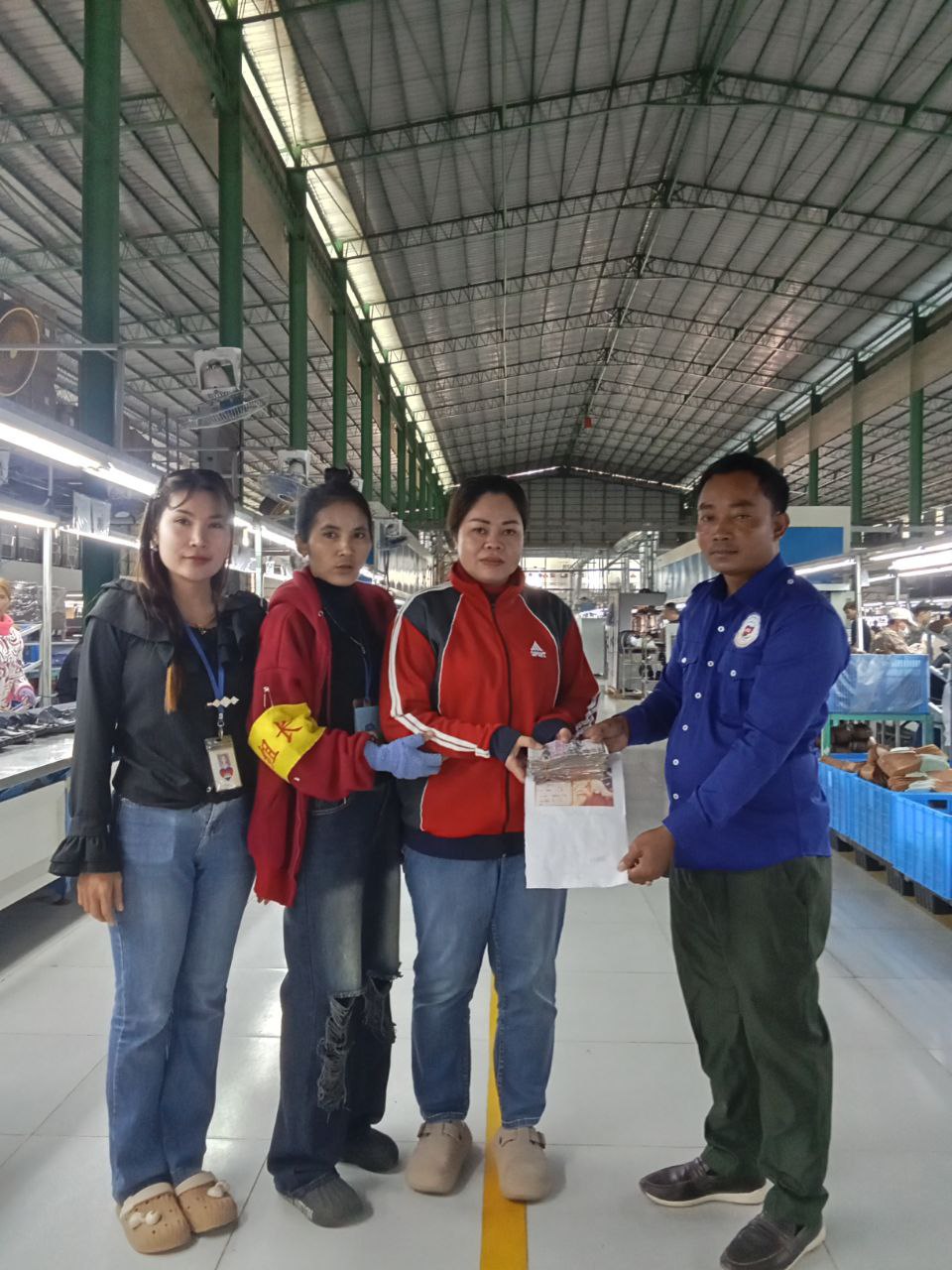 នាឱកាសនោះសហជីពកម្លាំងចិត្តកម្មករកម្ពុជា ប្រចាំក្រុមហ៊ុន ស៊ីយីហ្វេង ស្ព័តធីង ហ្គូដស៍ សូមថ្លែងអំណរគុណដល់លោក លី វិចិត្រ ប្រធានសហព័ន្ធសហជីពកម្លាំងចិត្តកម្មករកម្ពុជានិងសូមអគុណដល់បងប្អូនកម្មករ-កម្មការនីដែលតែងតែចូលរួមជាថវិកាផ្ទាល់ខ្លួនតាមសន្ធាជ្រះថ្លារបស់បងប្អូននិងសូមជូនពរដល់សមាជិកទាំងអស់ឱ្យជួបតែសំណាងល្អសុខភាពល្អនិងសូមជូនបុណ្យកុសលគ្រប់ៗគ្នា៕