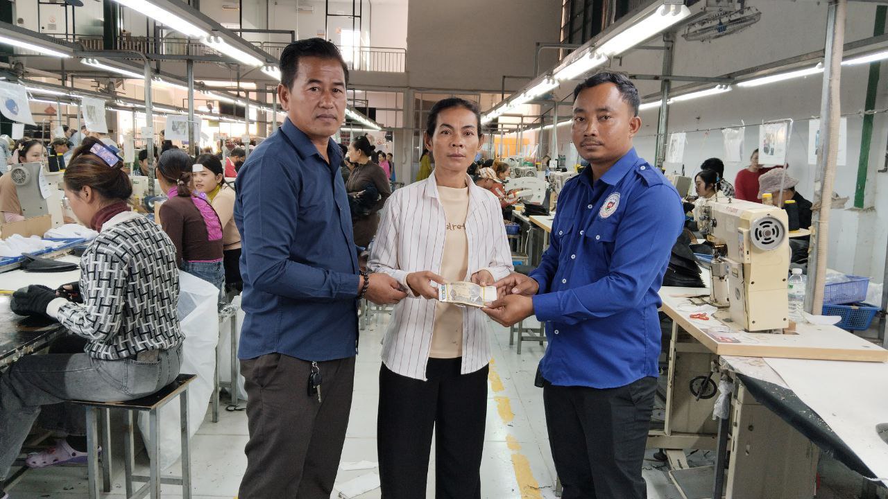 កំពង់ស្ពឺ៖ នៅថ្ងៃទី១៧ ខែមករា ឆ្នាំ២០២៦ ដោយមានការអនុញ្ញាតពីលោក លី វិចិត្រ ប្រធានសហព័ន្ធសហជីពកម្លាំងចិត្តកម្មករកម្ពុជា តំណាងសហជីពកម្លាំងចិត្តកម្មករកម្ពុជា ប្រចាំក្រុមហ៊ុន ស៊ីយីហ្វេង ស្ព័តធីង ហ្គូដស៍ ដែលមានអាសយដ្ឋាននៅភូមិសង្គ្រោះជាតិ ឃុំត្រពាំងគង ស្រុកសំរោងទង ខេត្តកំពង់ស្ពឺ ។ បានរៃអង្គាសទឹកប្រាក់ចំនួន១៥០,០០០រៀលជូនបងស្រីម្នាក់ឈ្មោះប៊ូ ធឿន អត្តលេខ១១៨០ បម្រើការងារផ្នែកដេរ ក្រុម៣ មូលហេតុគាត់បានជួបគ្រោះថ្នាក់ចរាចរណ៍។ថវិការទាំងអស់បានមកពីបងប្អូនកម្មករ-កម្មការនីប្រចាំក្រុមហ៊ុន ស៊ីយីហ្វេង ស្ព័តធីង ហ្គូដស៍។