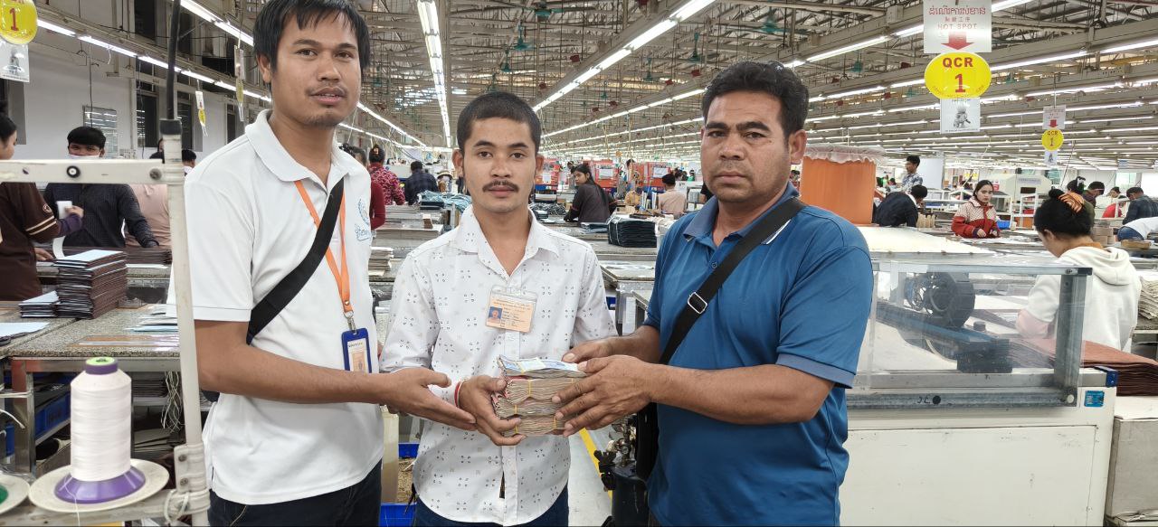 លោក សែ ចិត តំណាងសហជីពទឹកចិត្តកម្មករកម្ពុជា ប្រចាំរោងចក្រ វេនធូរ៉ា លេឌើរវែរ អឹមអេហ្វវ៉ាយ (ស៊ីឌី) ឯ.កបានរៃអង្គាសថវិកាចំនួន ៣៥០,៥០០រៀល ជូនសមាជិកសហជីពម្នាក់