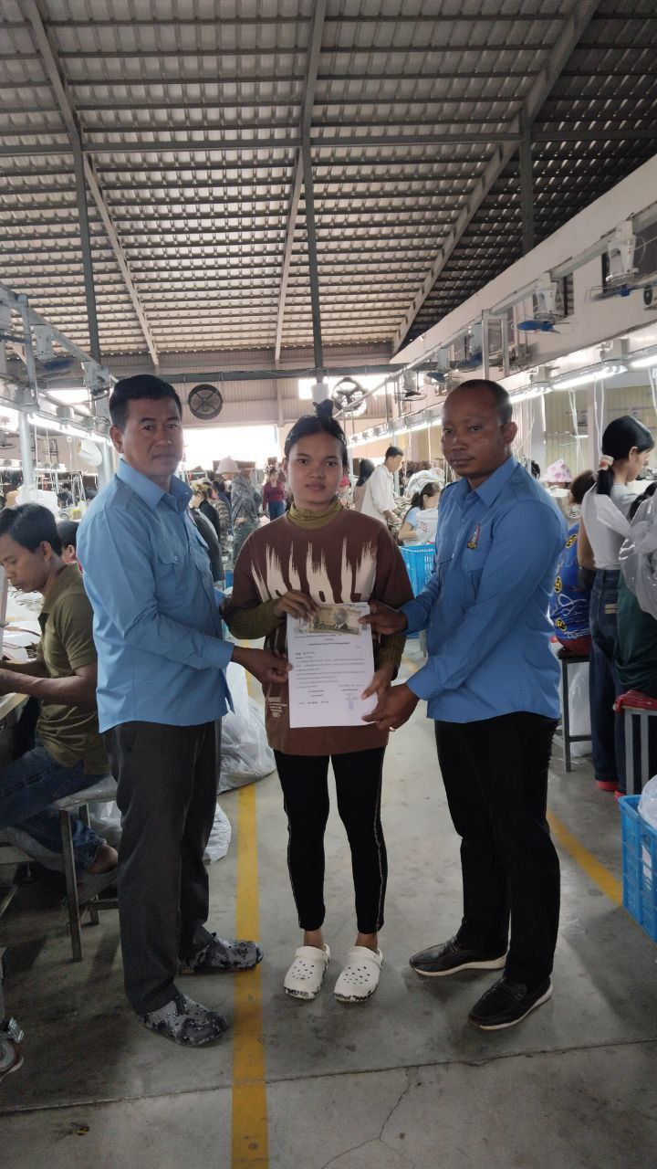 កំពង់ស្ពឺ៖ នៅថ្ងៃទី២០ ខែកុម្ភៈ ឆ្នាំ២០២៦ ដោយមានការអនុញ្ញាតពីលោក លី វិចិត្រ ប្រធានសហព័ន្ធសហជីពកម្លាំងចិត្តកម្មករកម្ពុជា តំណាងសហជីពកម្លាំងចិត្តកម្មករកម្ពុជា ប្រចាំក្រុមហ៊ុន ស៊ីយីហ្វេង ស្ព័តធីង ហ្គូដស៍ ដែលមានអាសយដ្ឋាននៅភូមិសង្គ្រោះជាតិ ឃុំត្រពាំងគង ស្រុកសំរោងទង ខេត្តកំពង់ស្ពឺ ។ បានឧបត្ថម្ភទឹកប្រាក់ចំនួន២៧០,០០០រៀលជូនបងប្អូនកម្មការនីចំនួន៣នាក់ដែលសម្រាលកូនចំនួន២នាក់និងរៀបអាពាពិពាហ៍ចំនួន១នាក់ដោយក្នុងមួយនាក់ទទួលបានទឹកប្រាក់ចំនួន៩០,០០០រៀល។