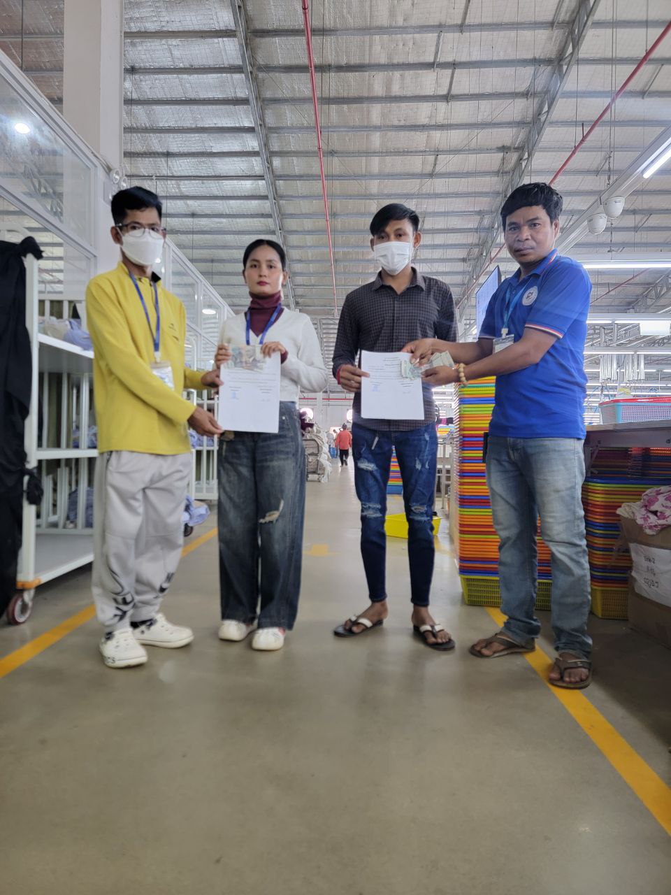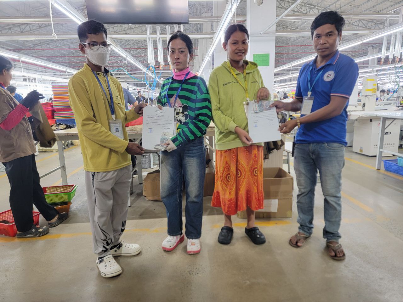 កំពង់ស្ពឺ៖ នៅថ្ងៃទី២៣ ខែកុម្ភៈ ឆ្នាំ២០២៦ ដោយមានការអនុញ្ញាតពីលោក លី វិចិត្រ ប្រធានសហព័ន្ធសហជីពទឹកចិត្តកម្មករកម្ពុជា លោក ជន ម៉ុង និង លោក បិច ពុទ្ធី តំណាងសហជីពទឹកចិត្តកម្មករកម្ពុជា ប្រចាំក្រុមហ៊ុន ប្រាយម៍ ស្ទីតធ៍ ឯ.ក ដែលមានអាសយដ្ឋាននៅ ភូមិក្រឡាញ់ សង្កាត់វាលពង់ ក្រុងឧដុង្គមានជ័យ ខេត្តកំពង់ស្ពឺ។ បានឧបត្ថម្ភទឹកប្រាក់ចំនួន៤៥០,០០០រៀលជូនសមាជិកសហជីពចំនួន៥នាក់ដោយក្នុងម្នាក់ទទួលបានទឹកប្រាក់ចំនួន ៩០,០០០រៀលក្នុងនោះរួមមាន៖
