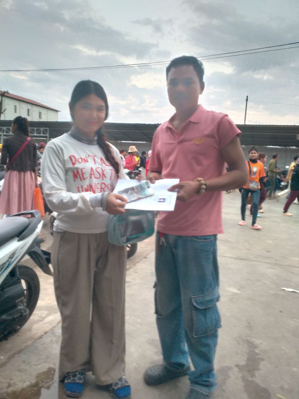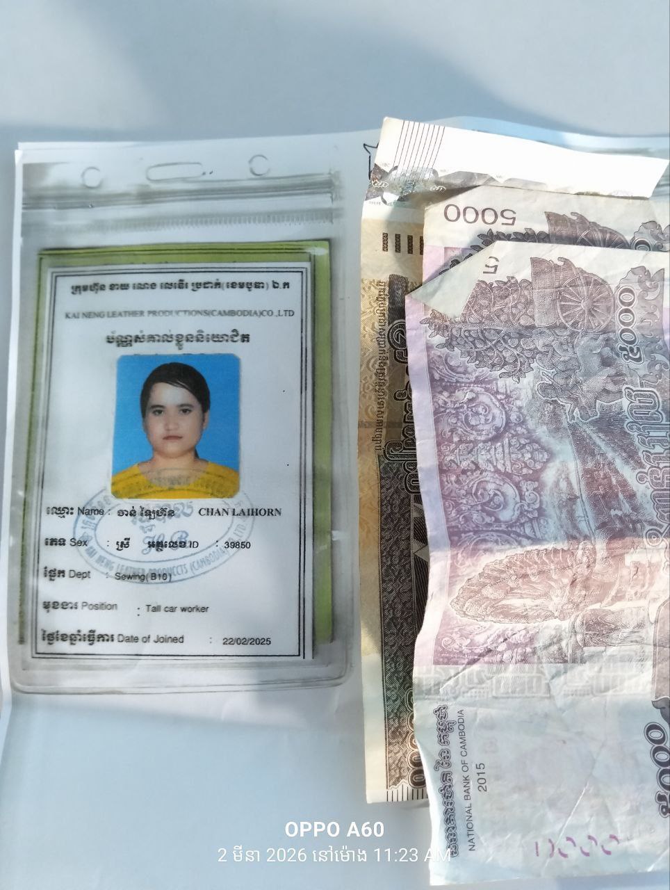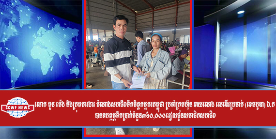 លោក មួន ម៉េង និងក្រុមការងារ តំណាងសហជីពទឹកចិត្តកម្មករកម្ពុជា ប្រចាំក្រុមហ៊ុន ខាយណេង លេឌើរប្រដាក់ (ខេមបូឌា) ឯ.ក បានឧបត្ថម្ភទឹកប្រាក់ចំនួន៣៦០,០០០រៀលជូនសមាជិកសហជីព