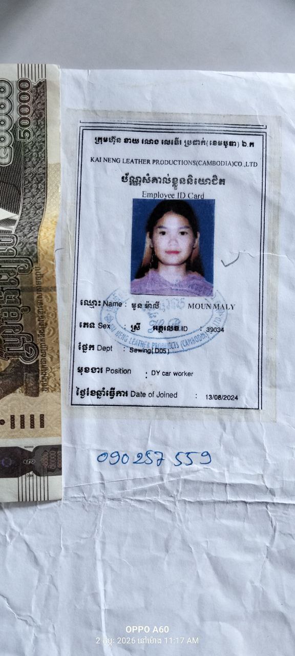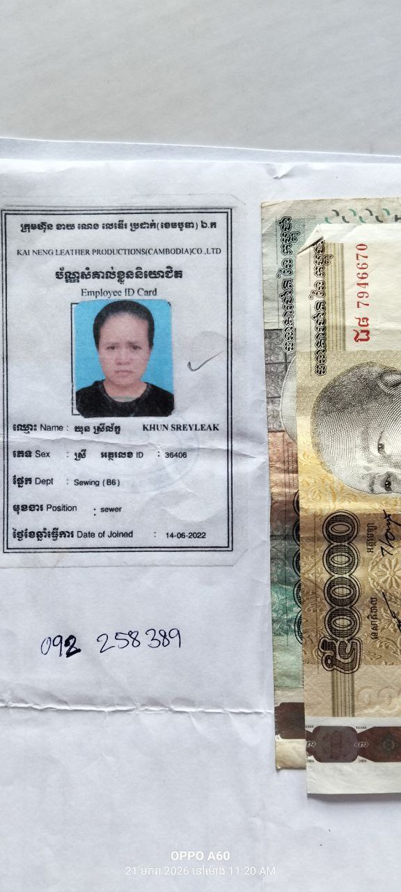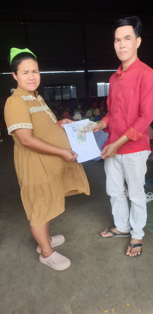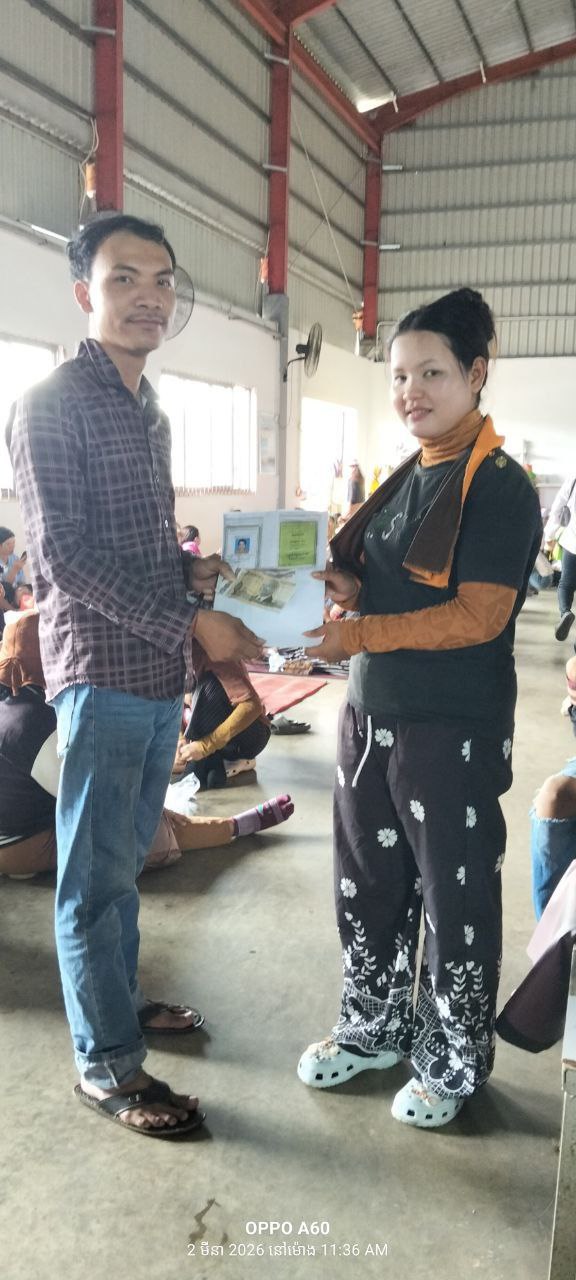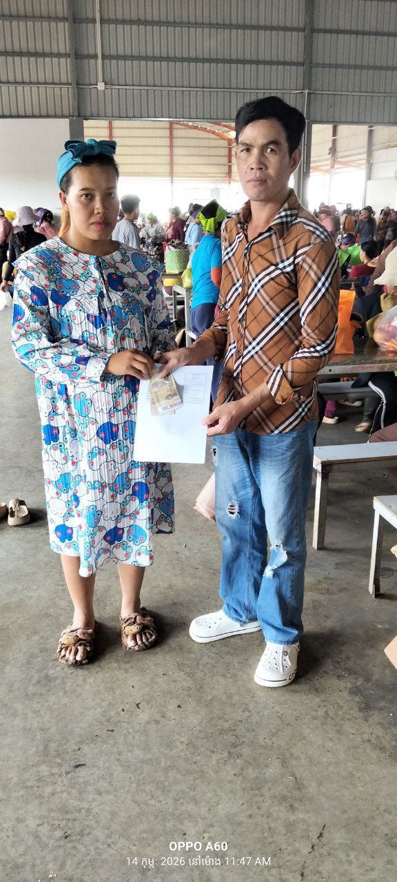 កំពង់ឆ្នាំង៖ នៅថ្ងៃទី៧ ខែមីនា ឆ្នាំ២០២៦ ដោយមានការអនុញ្ញាតពីលោក លី​ វិចិត្រ ប្រធានសហព័ន្ធសហជីពទឹកចិត្តកម្មករកម្ពុជាប្រចាំក្រុមហ៊ុន ខាយណេង លេឌើរប្រដាក់ (ខេមបូឌា) ឯ.ក ដែលមានអាសយដ្ឋាននៅភូមិផ្សារត្រាច ឃុំលង្វែក ស្រុកកំពង់ត្រឡាច ខេត្ដកំពង់ឆ្នាំង។ បាឧបត្ថម្ភទឹកប្រាក់ចំនួន៣៦០,០០០រៀល អ្នកមានផ្ទៃពោះចំនួន៦នាក់ដោយក្នុងមួយនាក់ទទួលបានទឹកប្រាក់ចំនួន៦០,០០០រៀលក្នុងនោះរួមមាន៖
