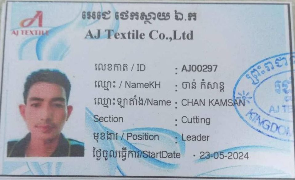 ១.ឈ្មោះ ចាន់ កំសាន្ដ ភេទប្រុស អត្តលេខAJ00297។