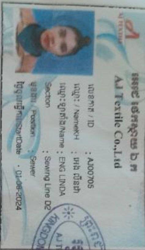 ២.ឈ្មោះ អេង លីនដា ភេទស្រី អត្តលេខAJ00705។