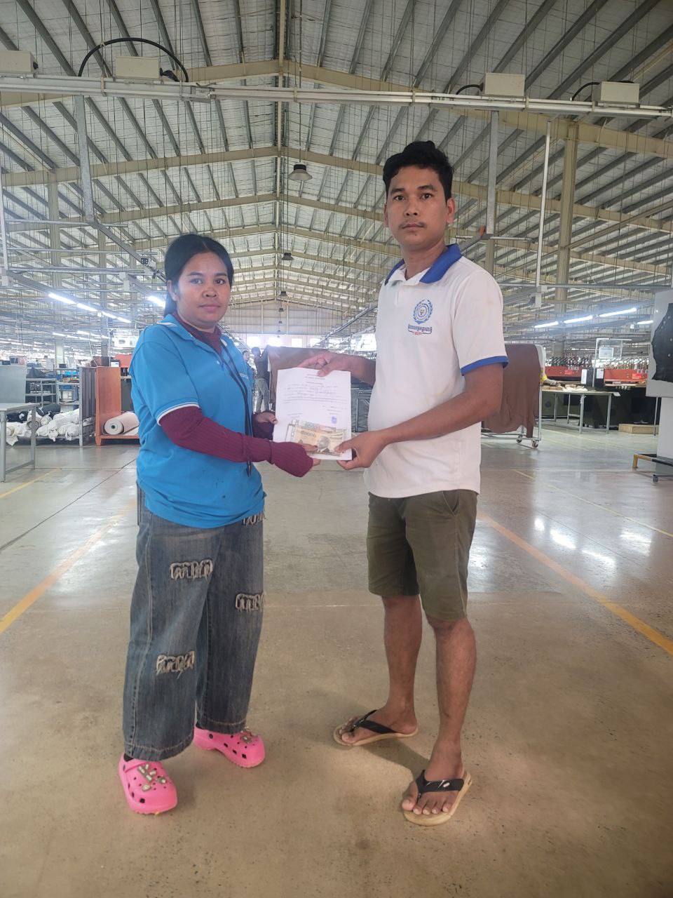 កំពង់ឆ្នាំង៖ នៅថ្ងៃទី២១ ខែវិច្ឆិកា ឆ្នាំ២០២៥ ដោយមានការអនុញ្ញាតពីលោក លី វិចិត្រ ប្រធានសហព័ន្ធសហជីពទឹកចិត្តកម្មករកម្ពុ ប្រចាំក្រុមហ៊ុន ស៊ីអិនឌឺហ្រ្គី បាននាំយកប្រាក់ឧបត្ថម្ភចំនួន ១,៦០០,០០០រៀលជូនសមាជិកសហជីពដែលសម្រាលកូន ចំនួន៤នាក់ និងកម្មការនីដែលសម្រាកព្យាបាលនៅមន្ទីពេទ្យលើសពីមួយសប្តាហ៍ ចំនួន១នាក់ ដោយក្នុងម្នាក់ៗទទួលបានប្រាក់ឧបត្ថម្ភចំនួន ១២០,០០០រៀល