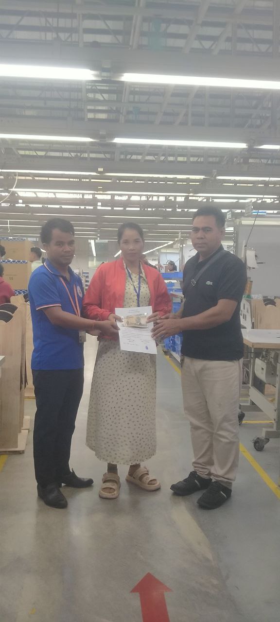 លោក សែ ចិត និងក្រុមការងារតំណាងសហជីពទឹកចិត្តកម្មករកម្ពុជា ប្រចាំក្រុមហ៊ុន វេនធូរ៉ា លេឌើរវែរ អឹមអេហ្វវ៉ាយ (ស៊ីឌី) ឯ.ក បានផ្ដល់ប្រាក់ឧបត្ថម្ភចំនួន១,៩២០,០០០រៀលជូនទៅដល់សមាជិកសហជីពចំនួន១៦នាក់