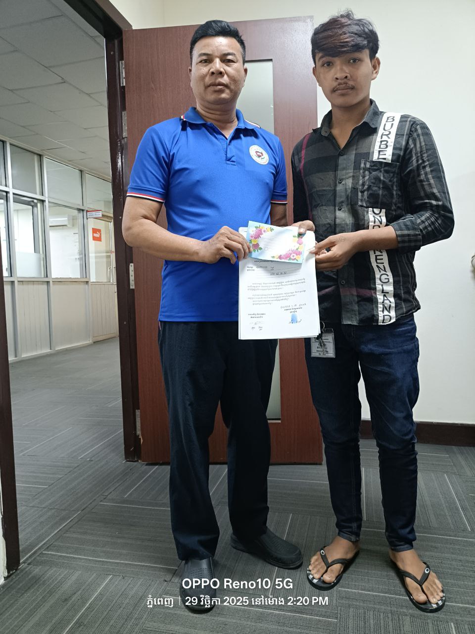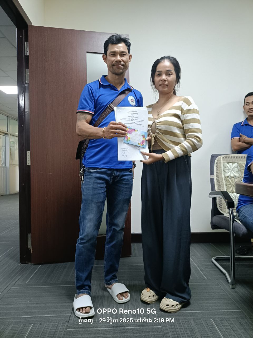 ភ្នំពេញ៖ នៅថ្ងៃទី២៩ ខែវិច្ឆិកា ឆ្នាំ២០២៥ ដោយមានការអនុញ្ញាតពីលោក លី វិចិត្រ ប្រធានសហព័ន្ធសហជីពទឹកចិត្តកម្មករកម្ពុជា តំណាងសហជីពទឹកចិត្តកម្មករកម្ពុជា ប្រចាំក្រុមហ៊ុន ស៊ីនប៉ូ (ខេមបូឌា) ហ៊្វូតវែរ ឯ.ក ដែលមានអាសយដ្ឋាននៅភូមិទួលរកា៣ សង្កាត់ចាក់អង្រែក្រោម ខណ្ឌមានជ័យ រាជធានីភ្នំពេញ។ បានផ្ដល់ប្រាក់ឧបត្ថម្ភចំនួន ១,០០០,០០០រៀល ជូនសមាជិកសហជីពចំនួន៥នាក់ ដោយក្នុងម្នាក់ៗទទួលបានប្រាក់ឧបត្ថម្ភចំនួន ១២០,០០០រៀល និងកម្មករម្នាក់ទៀតដែលទទួលមរណភាពបានទទួលប្រាក់ឧបត្ថម្ភចំនួន៤០០,០០០ក្នុងនោះរួមមាន៖