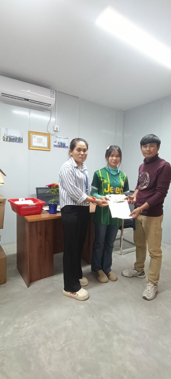 កំពង់ស្ពឺ៖ នៅថ្ងៃទី១៥ ខែធ្នូ ឆ្នាំ២០២៥ ដោយមានការអនុញ្ញាតពីលោកស្រី​ ហ៊ុន រស្មី ប្រធានសហព័ន្ធសហជីពទឹកចិត្តស្រ្តីកម្ពុជា តំណាងសហជីពទឹកចិត្តស្រ្តីកម្ពុជា ប្រចាំក្រុមហ៊ុន ហ្សេនសែន ស៊ូ (ខេមបូឌា) ឯ.ក ដែលមានអាសយដ្ឋាននៅភូមិព្រះម្លប់ ឃុំភារីមានជ័យ ស្រុកបរសេដ្ឋ ខេត្ដកំពង់ស្ពឺ។ បានឧបត្ថមទឹកប្រាក់ចំនួន៣៦០,០០០រៀលជូនសមាជិកសហជីពចំនួន៣នាក់ មូលហេតុគាត់បានដាក់ច្បាប់លំហែមាតភាព និងសមាជិកសហជីពដែលរៀបអពាពិពាហ៍ចំនួន១នាក់។នៅក្នុងម្នាក់ទទួលបានទឹកប្រាក់ចំនួន៩០,០០០រៀល។