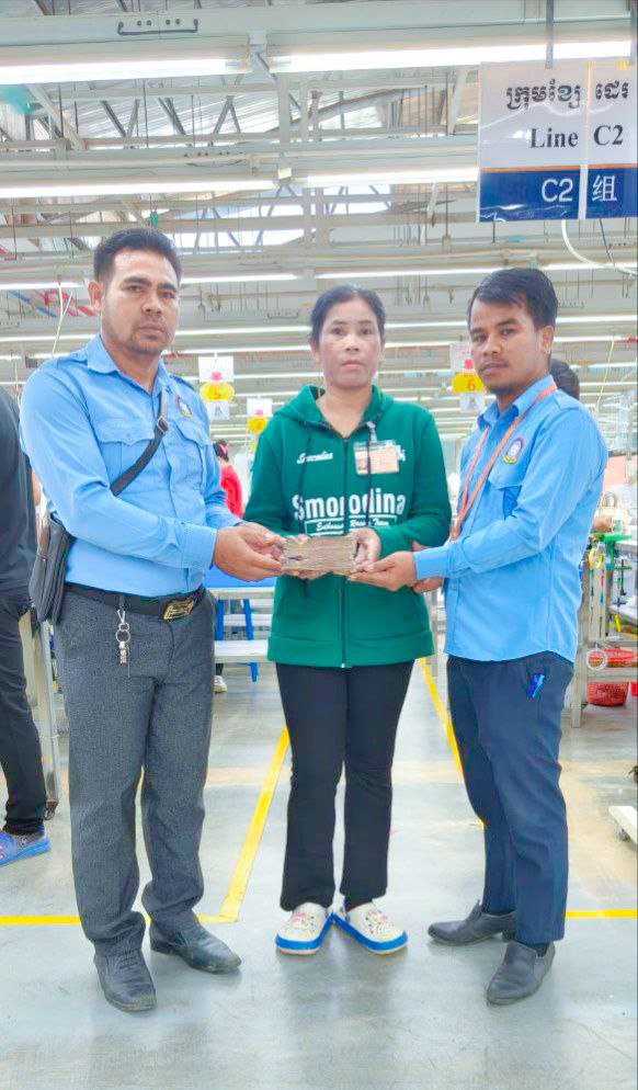 កំពង់ស្ពឺ៖ នៅថ្ងៃទី៦ ខែធ្នូ ឆ្នាំ២០២៥ ដោយមានការអនុញ្ញាតពីលោក លី វិចិត្រ ប្រធានសហភាពសហជីពសុភមង្គលកម្មករកម្ពុជានិងជាប្រធានសហព័ន្ធសហជីពទឹកចិត្តកម្មករកម្ពុជា លោក សែ ចិត និងក្រុមការងារតំណាងសហជីពទឹកចិត្តកម្មករកម្ពុជា ប្រចាំក្រុមហ៊ុន វេនធូរ៉ា លេឌើរវែរ អឹមអេហ្វវ៉ាយ (ស៊ីឌី) ឯ.ក ដែលមានអាសយដ្ឋាននៅភូមិវាលវង់ ឃុំសែនដី ស្រុកសំរោងទង ខេត្ដកំពង់ស្ពឺ។ បានរៃអង្គាសថវិកាចំនួន១៥៦,០០០រៀលជូនទៅដល់គ្រួសារកម្មការិនីម្នាក់ឈ្មោះ ម៉ម ថន ភេទស្រី អត្តលេខ១៦៨០១ បម្រើការងារផ្នែកដេរC២មូលហេតុដោយសារឪពុករបស់គាត់បានទទួលមរណភាព ថវិកាទាំងអស់បានមកពីការរៃអង្គាសពីបងប្អូនកម្មករ-កម្មការិនីប្រចាំក្រុមហ៊ុន វេនធូរ៉ា លេឌើរវែរ អឹមអេហ្វវ៉ាយ (ស៊ីឌី) ឯ.ក